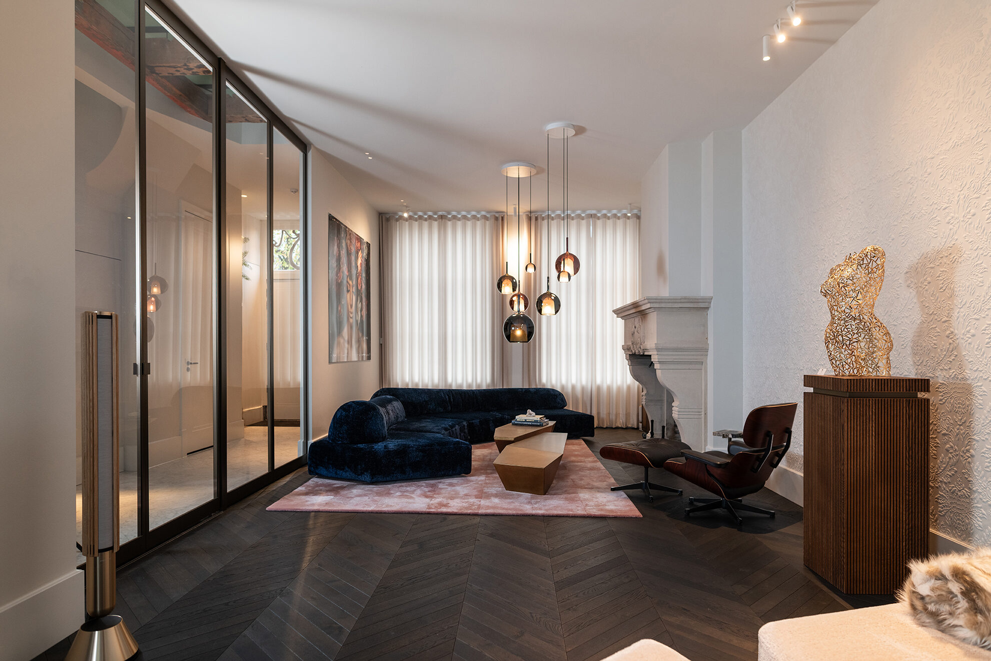 Deze monumentale kasteelboerderij uit 1866 is met zorg gerenoveerd en ligt prachtig verscholen in de bossen. Onze interieurontwerper creëerde hier een interieur dat verleden en comfort moeiteloos met elkaar verbindt.